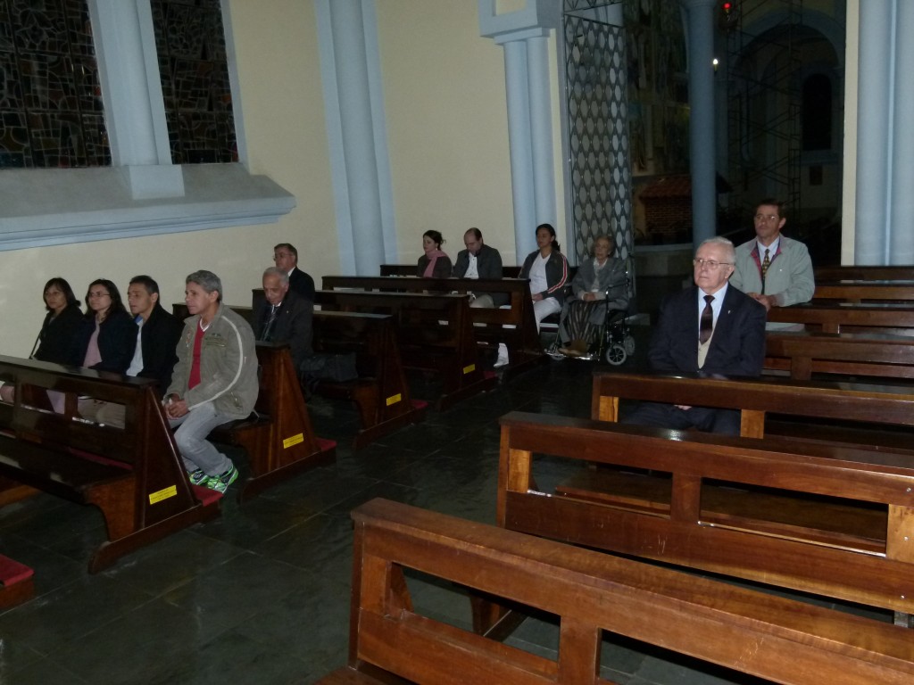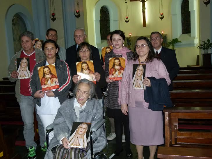Aqui, o grupo de fieis recebe a Estampa abençoada do Sagrado Coração de Jesus.
